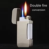 New Switchable Creative grinding wheel double fire inflatable lighter Inflatable Thin Metal Butane Lighters Smoking Cigarette Ga