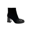 French Horse Street buckle Naked boot girl 2021 Autumn New Black Retro Short boots Thick heel Square head Side zipper Size 33-46