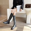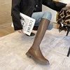 Autumn Women's Knee-length Boots Fashion Floral Leather Zipper Non-slip Shoes Round Toe Mid-heel Casual Comfortable Casual Boots