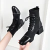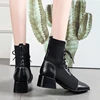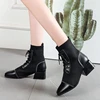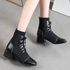 Women's Ankle Boots 2021 PU Leather Stitching Cross Tie Shoes Winter Elegant Square Heel Short Boots Women Fashion Women Boots