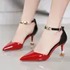 zapatos de mujer women fashion sweet pointed toe buckles strap stiletto heels lady cool red party heel shoes