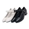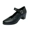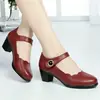 women fashion round toe red pu leather comfort spring office square heel pumps lady classic black heel shoes