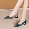women sexy high quality blue pu leather pointed to high heel shoes for night club cute sweet party heel pumps