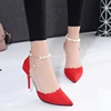 women fashion pointed toe 7cm high heel shoes lady sexy red wedding high heels with pearl deco female party shoes