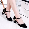 women classic high quality pink square heel shoes for office ladies black flock party heel pumps zapato tacon