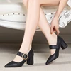 Women Fashion Sexy Silver Squre Heel Pumps for Night Club Lady Casual Black High Quality Heel Shoes Zapatos