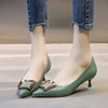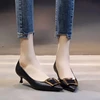 Zapatos Dama women light weigh green pu leather 3cm low heel shoes for office lady party comfort black heels