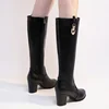 Women Boots Fashion Women Long Boots Comfortable Women Casual Shoes Zipper High Heels For Ladies Round Toe Female Boots Big Size