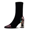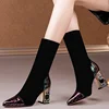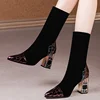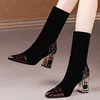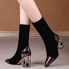 Women Sexy High Heels Ladies Pointed Toe Female Footwear Women Sock Boots Fashion Women Mid-Calf Boots Stretch Fabric Boots For