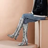 Snake Print Thick Heel Pleated Thick Heel Knee-Length Boots Super High Heel PU Wine Red Pointed Flower Snake Print Boots Animal