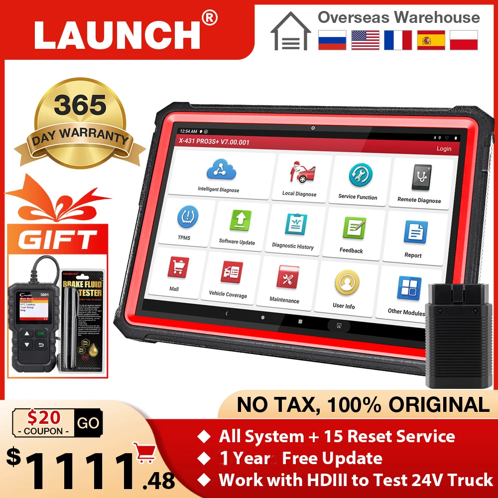 LAUNCH X431 PRO3S+ 10.1" OBD2 Scanner Automotive Professional Diagnostic Tool 12V Car Code Reader OBD ScanOBDII Diesel Test