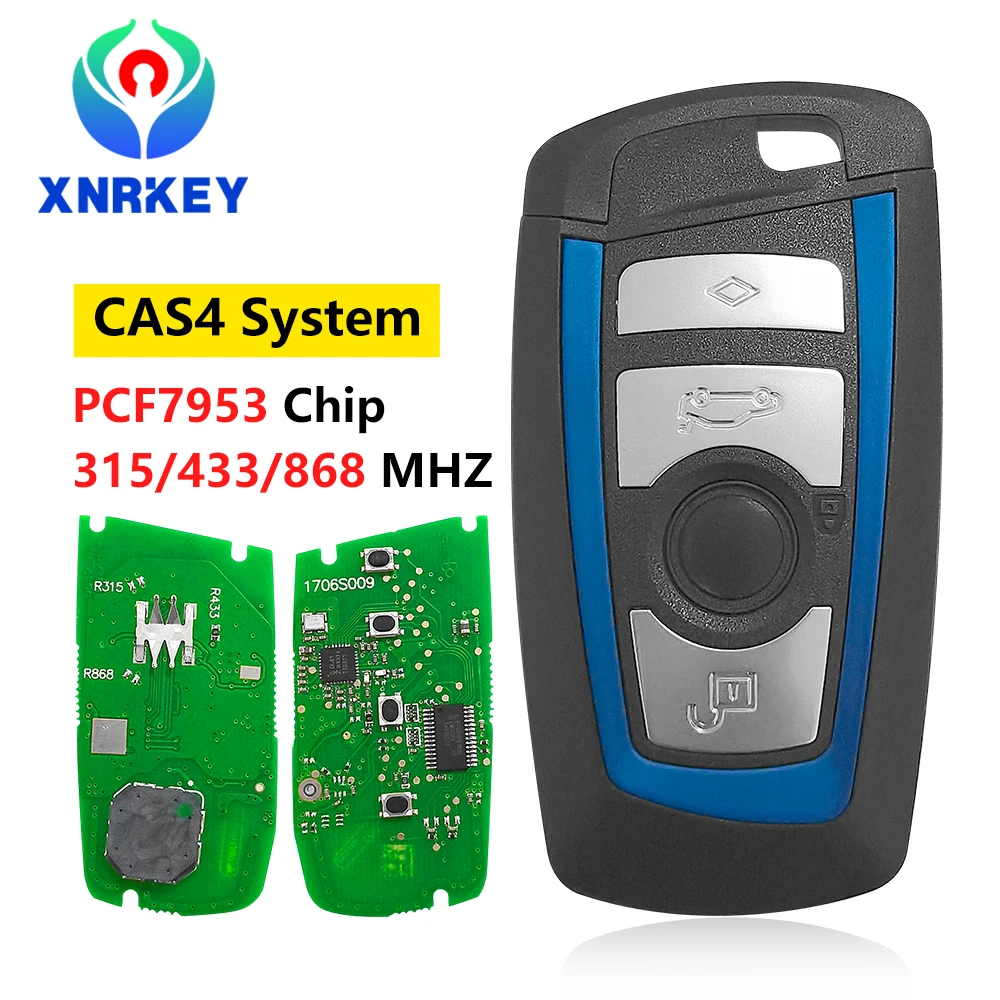 XNRKEY 4 Button Blue Remote Key ID49/PCF7953 Chip 315/433/868Mhz for BMW 3 5 7 Series 318 320 325 330 523 528 535 550 Car Key