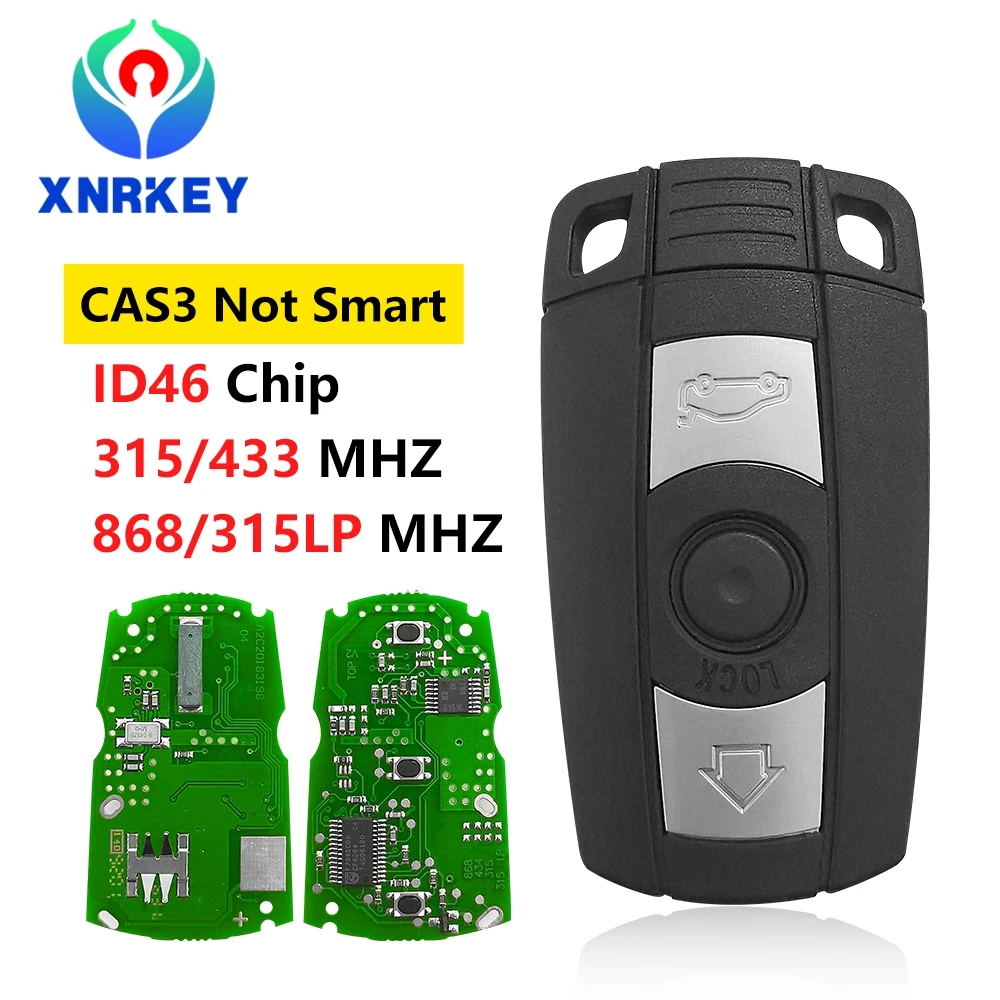 XNRKEY 3 Button Remote Key ID46 Chip 315/433/868/315LP Mhz for BMW 1 3 5 Series CAS3 System Non-smart Car Key