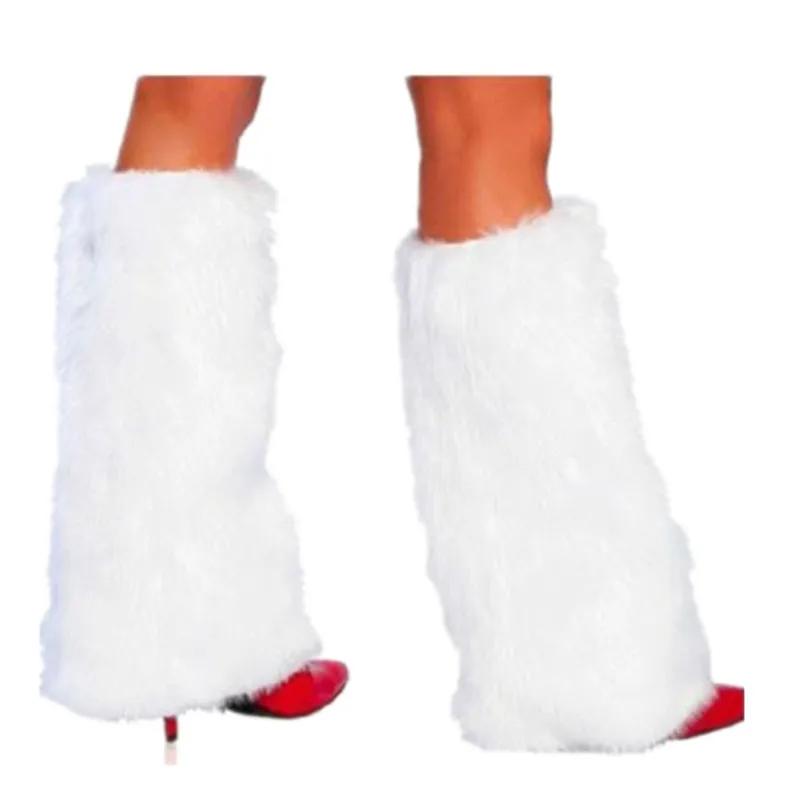 Winter Women Boot Covers Warm Christmas White Furry Foot Covers Christmas Uniform Accessories Party Show Party Foot Covers