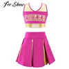 Kids Girls Cheerleading Uniform Summer Cheer Leader Dance Costume Set Sleeveless V-Neck Letter Print Crop Top with Skirt Clothes