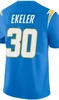 Custom Embroidery For Men Women Kid Youth Austin Ekeler White Yellow Blue Navy American Football Jersey