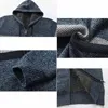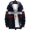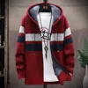 Striped Sweater Coat Thick Fleece Warm Zipper Wool Hooded Cardigan Jumpers Men Long Sleeve Knitted Sweaters