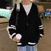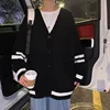 QIWN Cardigan Sweater Men's Autumn Knitted Loose Sweater Striped Casual Mens Clothing Sweater for Men Men Jacket