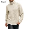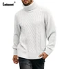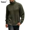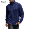 Ladiguard Knitted Sweater Mens Autumn England Style Fashion Skinny Top Turtleneck Pullovers Sweater Dark Blue Men Clothing 2021