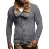 2021 Sweater Men Autumn Winter New Solid Color Long Sleeve Knitting Jacket Western Style Turtleneck Fur Collar Single Breasted