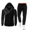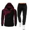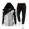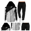 Men's Tracksuit Sports Suit Hooded Drawstring Coat Two Colors Patchwork Two Piece Set for Winter