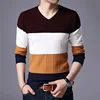 Brand Mens Quality New Fashion V Top Knitted Pullover Striped Neck Sweater Korean Thick Autum Casual Jumper Clothes Men Hombre