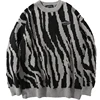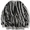 Japanese Harajuku Vintage Sweater Winter Zebra-Striped Round Neck Pullovers Knitted Couples Hip Hop Loose Fashion Sweaters Tops