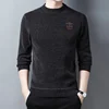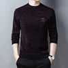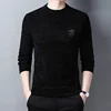 Autumn and winter new men's long sleeves Plush thickened chenille sweater round neck slim fit simple embroidery sweater men's