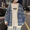 Knitted cardigan sweater for men 2021 spring autumn cashew flower fashion jacket lose casual handsome trendy academy sweater