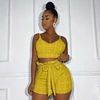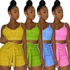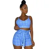 Women Tracksuit Two Pieces Sets 2021 Summer Fashion Lattice Print Sexy Crop Top Biker Shorts 2 Pieces Set Streetwear Outfits