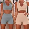 Two Piece Set Women Knitted Stripe Seamless Sexy Gym Workout Clothes Sports Bra + Shorts Casual Suit Tracksuit Fitness Outfits