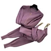 Casual 2021 Spring Autumn Women Sets Knitted Outerwear Coats with Tanks and Elastic Waist Pencil Pant 3 Piece Set Solid Clothes