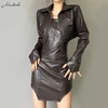 Macheda Autumn new biker PU leather dress is paired with a PU leather jacket a dark brown zip outwear two-piece backless dress