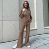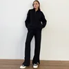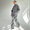 2021 Autumn New Sportswear Sweater Set Pullover Sweatshirt Stand Collar Slit Pants Neutral Style Solid Color Simple Women's Wear