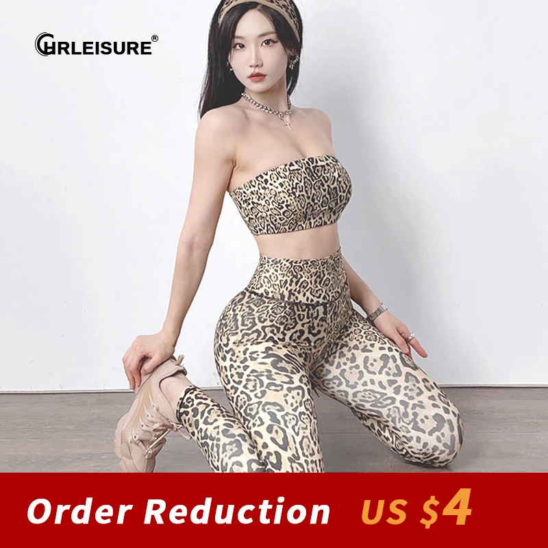 CHRLEISURE Leopard Pattern Print High Waist Leggings Suit Sport Elastic Tight Seamless Fitness Bra Quick-Drying Lift Hip Sets