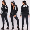 Women's Sweatshirt Set 2-piece Suit Elegant Fashion Stripe Hoodies+Sweatpants LOVE Print Hat Spring Autumn Female Tracksuit