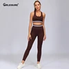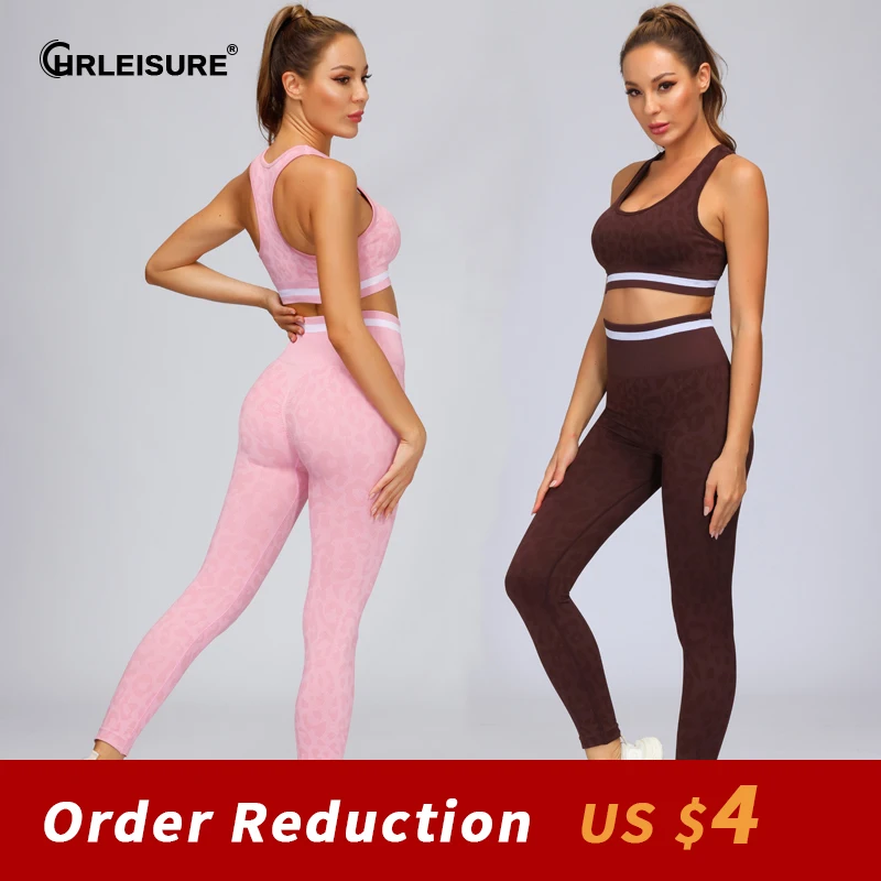 CHRLEISURE Leopard Hip Lifting Fitness Suit Beauty Back Fitness Sport Bra Women Seamless Sportswear High Waist Gym Sports Suit