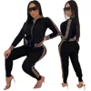 sports suit is fashionable elegant and oversized Two-piece suit with casual printed stitching coat and zipper jogging pants suit