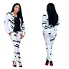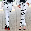 Women 's Fashion Black & White Striped Print Shoulder Jacket + Pants Two - piece Set
