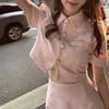 Sweet Temperament Pink Puff Sleeve Lapel Coat Women Single-breasted Short Jacket Summer Fashion Mini Skirts Matching Sets Chic