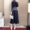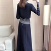 2021 Spring Autumn 2 Piece Skirt Suits Sets Women Turtleneck Sweatshirts + Pleated Long Skirt Suits Casual Fashion Vintage Set
