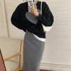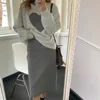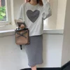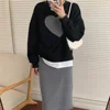 Autumn New Fashion Two Pieces Sets Loose Korea Sweatshirts Casual Hot Women Elastic Waist Printed Mid-Length Skirts