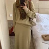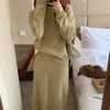Comfortable Knitwear Women Two Pieces Sets High Waist Straight Skirts Autumn Pullover Loose Mock Neck Sweaters