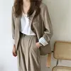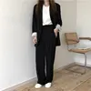 Plus Size Elegance Retro Women Hot 2021 Chic Casual Femme Blazers+ Straight Solid Pants Loose Suits Set 2 Piece Sets