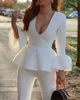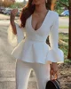 women's New trumpet Sleeve Top Pants Set ladies Ruffle V-neck top pants two piece set