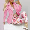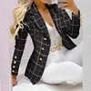 Fashion Plaid Print Blazer And Long Pants Suits 2021 Women Casual Long Sleeve Two Piece Sets Elegant Office Lady Button Outfits