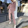 Women Pants Tracksuit Velvet Zipper Jacket Sets Casual Drawstring Hoodie Top And Lace Up Joggers Ladies Suit Loose Trendy Autumn