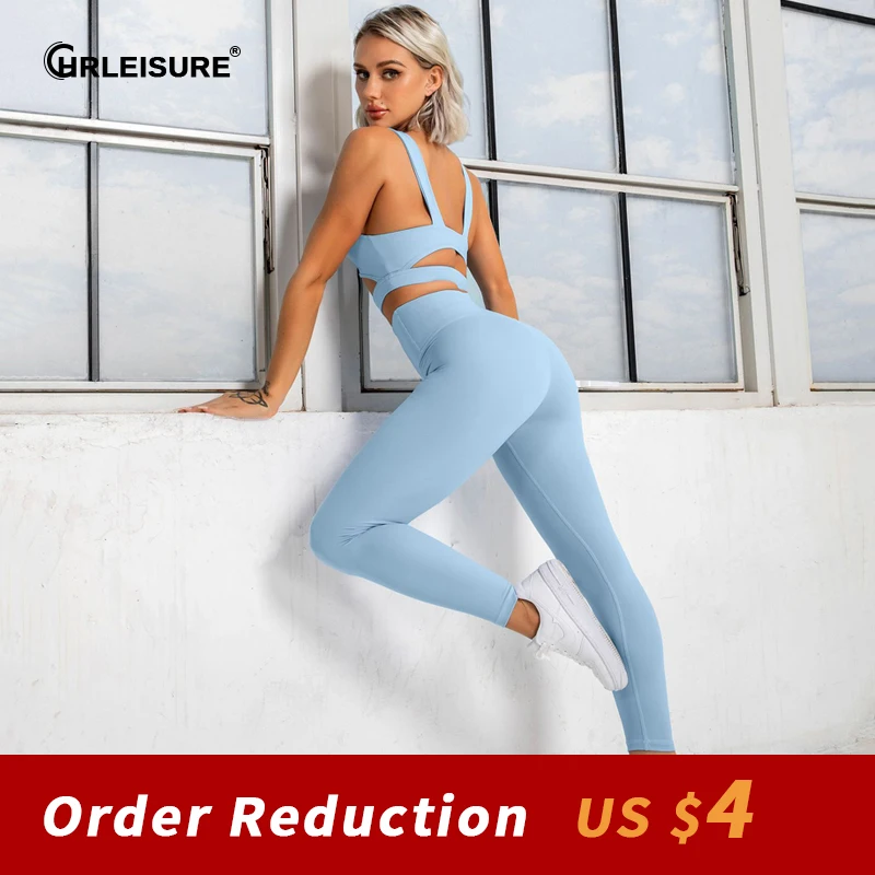 CHRLEISURE High Waist Sports Suit Women Seamless Push Up Fitness Workout Suit Gym Jogging Tracksuit Training Clothing Sportswear