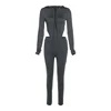 Macheda Deep V zipper onesie cut-out sides sexy fashion tights paired with low-waisted tights in a dark grey women's tights suit