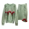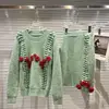 Knitwear Sets Women 2021 Winter New Knitted Little Flower Pull Sweater + Elastic Waist Stretch Skirt Female Fashion Two Pieces